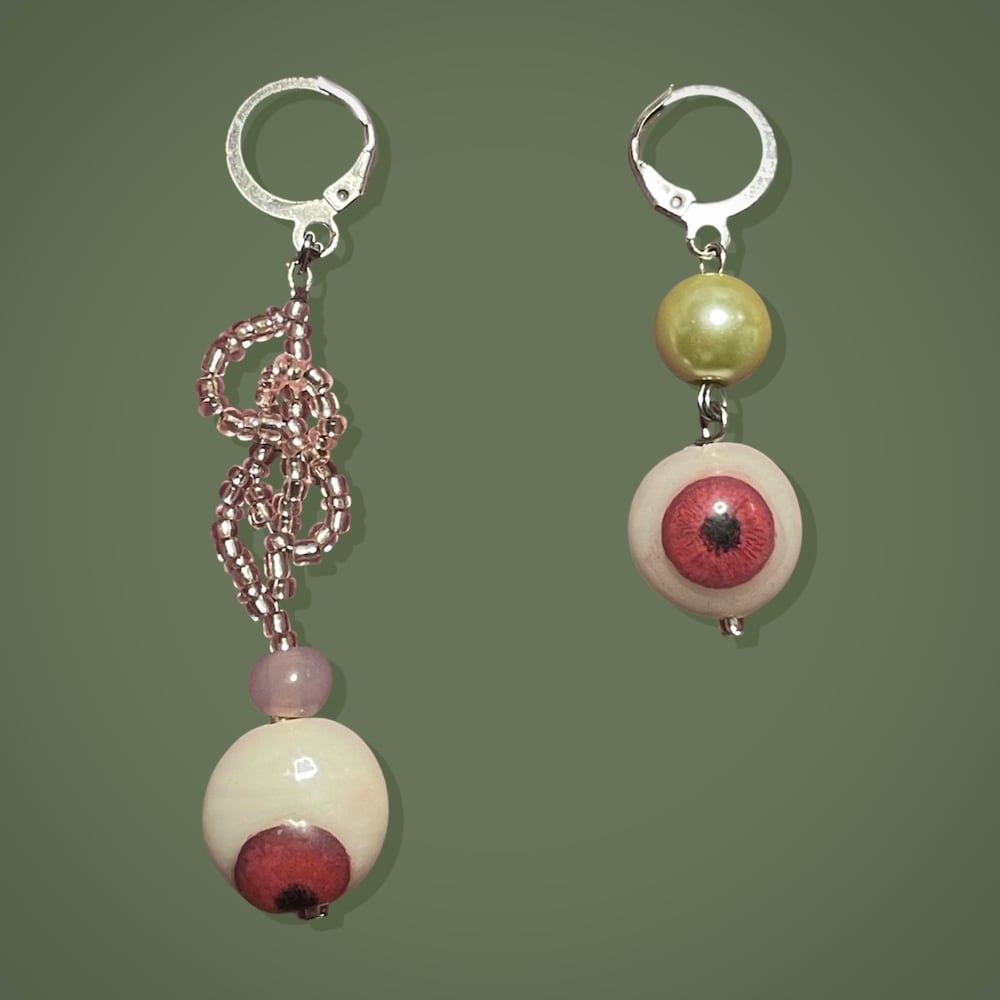 *ੈ✩‧₊• made-to-order earrings featuring glass + lampwork beads. eyeball beads hand-painted by me (sealed with resin). stainless steel findings, metal lobster clasp.